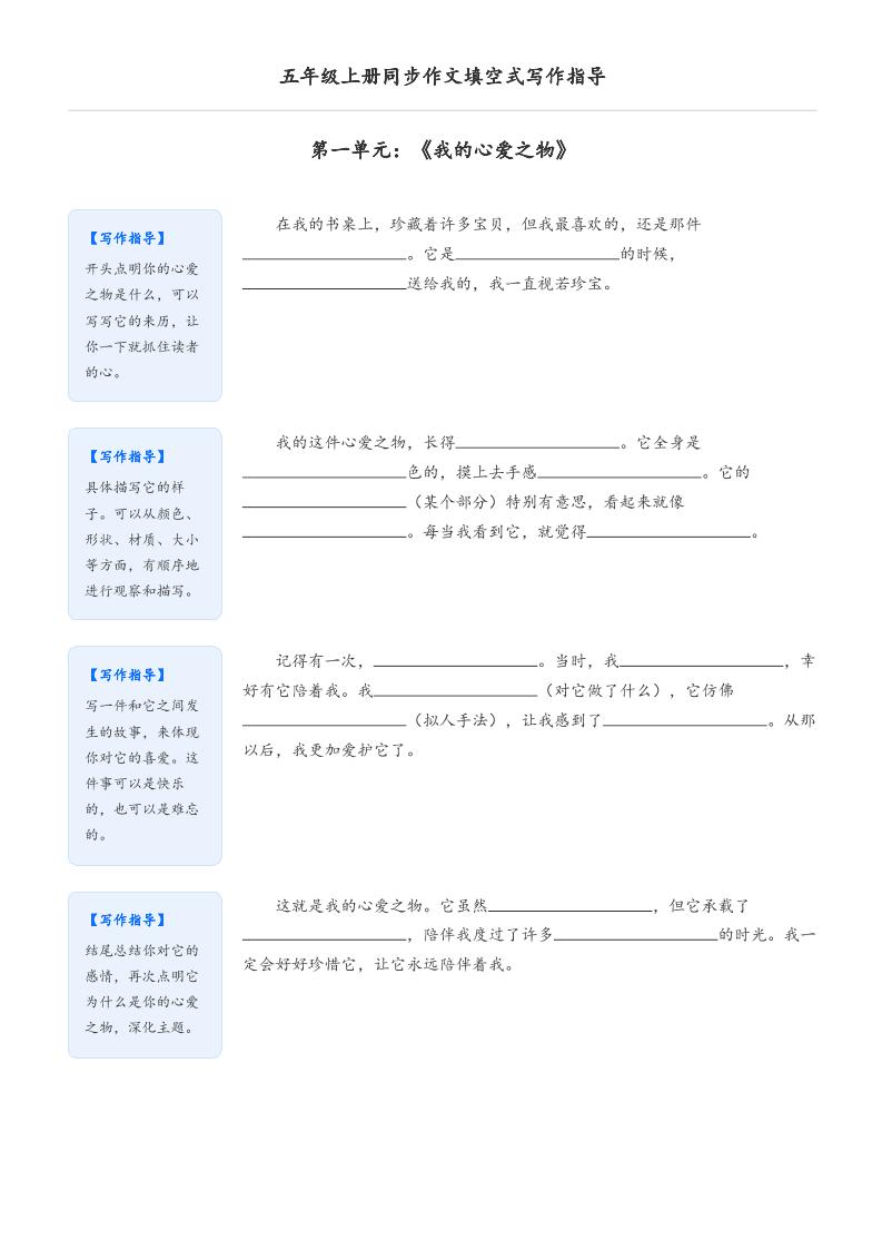 首页 > 全部 > 语文 > 五年级上册语文同步作文填空式写作指导(空白版)